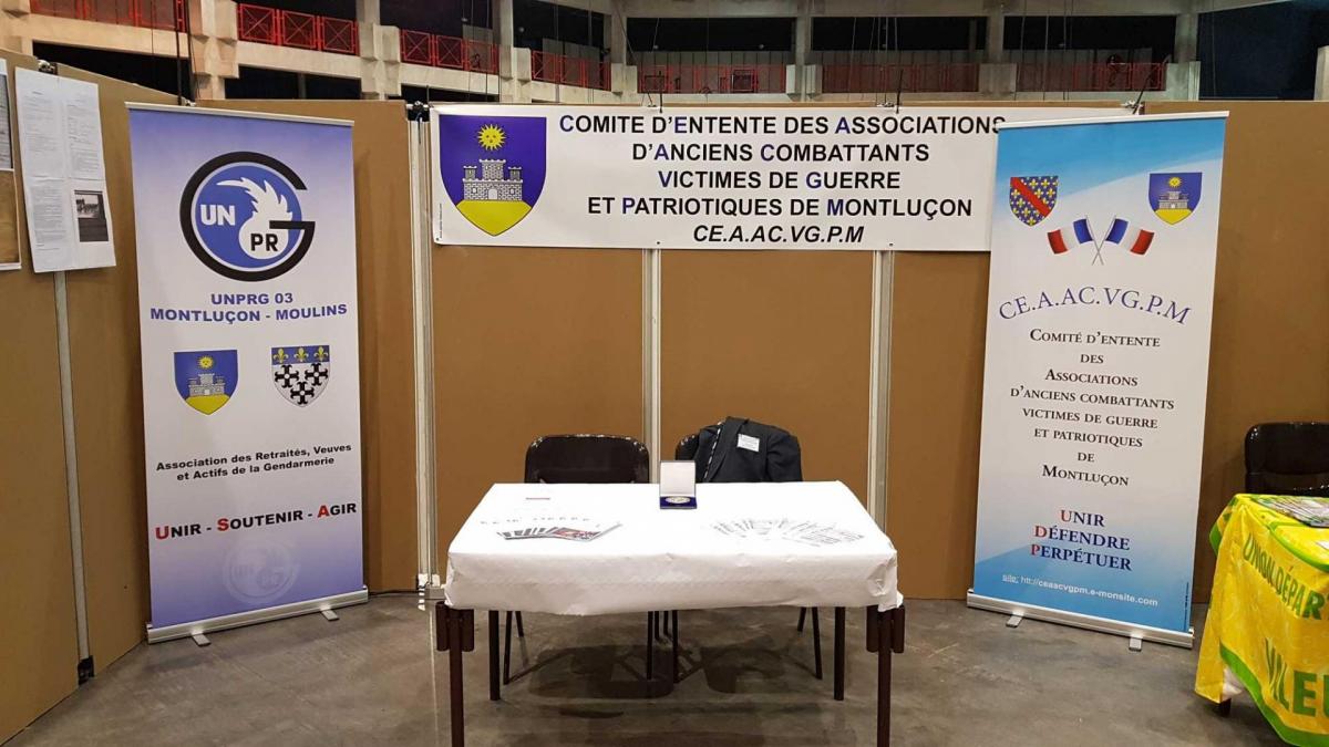 Le 27 et 28 septembre 2019, s’est tenu le forum des associations salle Athanor à Montluçon. 160 associations étaient présentes . Le comité d’entente des association d’ancien s combattants, victimes de guerre et patriotiques de Montluçon. 9 associations étaient représentées : le CEAACVGPM, l’ANACR, Les Pompiers de Paris, les Sous-officiers de réserve, l’UNPRG, le SNMSS les APG CATM et les Amis de la gendarmerie et tenait un stand, mettant en valeur leur association dans le bassin montluçonnais.